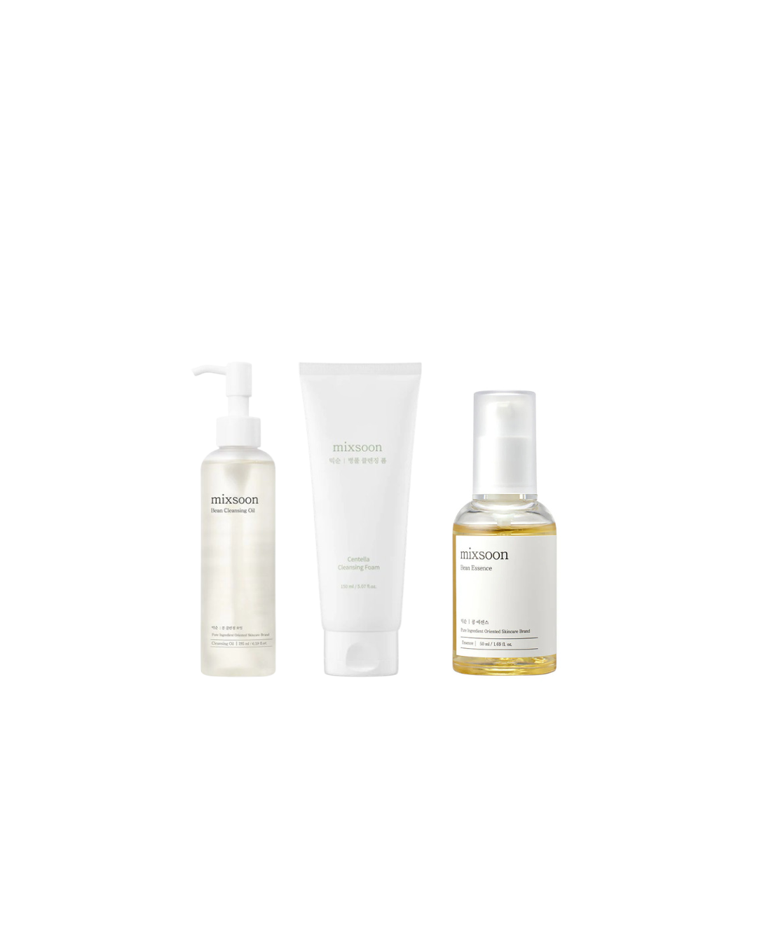 Das Set kombiniert die doppelte Reinigung (Öl gefolgt von Schaum) zur Tiefenreinigung, gefolgt von der Bean Essence zur intensiven Hydratation und Verfeinerung der Haut.