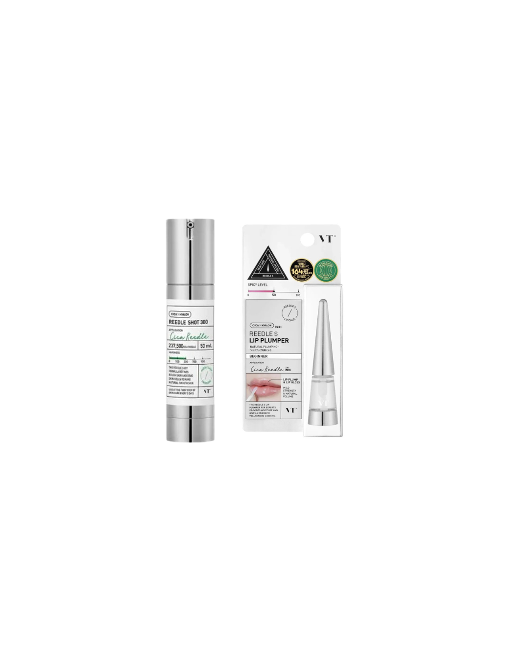 Das VT Reedle Shot Starter-Set mit dem stärkeren Reedle Shot 300 bietet eine intensivere Form der Mikronadel-Technologie und eignet sich für alle, die sich bereits mit der Reedle-Pflege auskennen oder gezielt eine kräftigere Wirkung wünschen. Das Reedle Shot 300 Serum (50ml) enthält eine höhere Konzentration an Cica-Mikronadeln, die die Haut stimulieren, die Aufnahme der Pflegewirkstoffe verbessern und das Hautbild sichtbar glatter und gleichmäßiger wirken lassen. Ergänzend sorgt der Reedle Shot Lip Plumper Beginner für einen sanften, pflegenden Prickeleffekt und lässt die Lippen voller und definierter erscheinen. Gemeinsam ergibt sich ein wirkungsvolles Duo für intensivere Hautpflege und gepflegte, voluminös wirkende Lippen – ideal für alle, die die Reedle-Technologie auf dem nächsten Level erleben möchten.